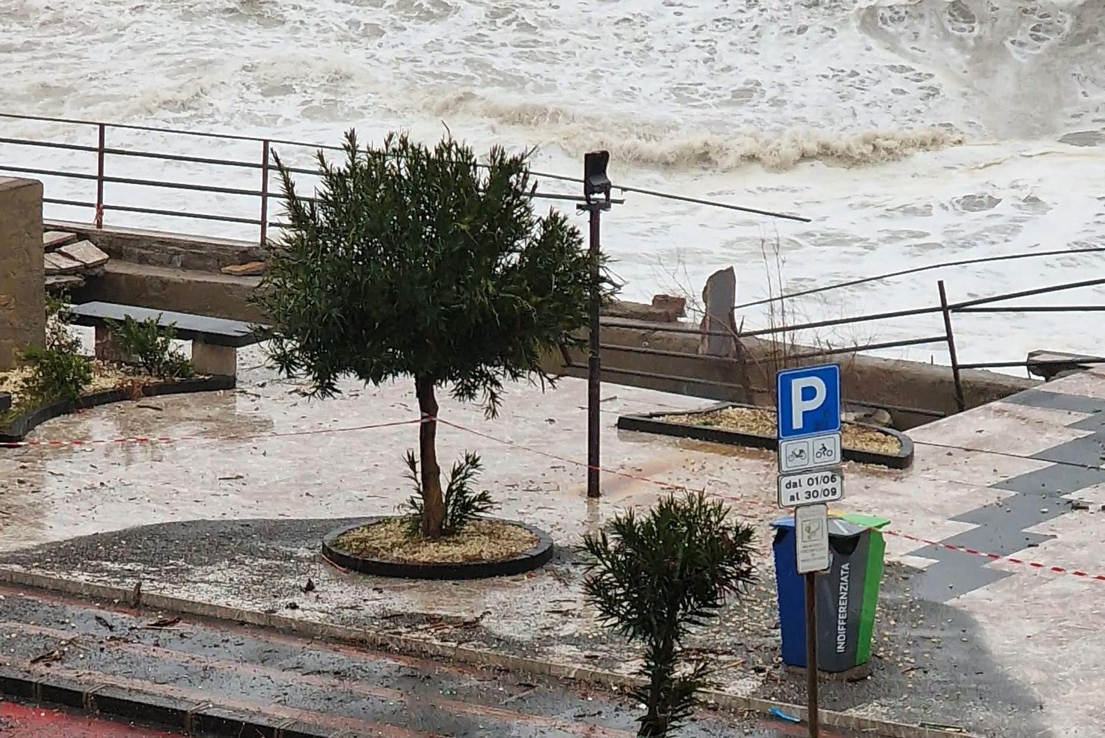 L’intera area, che ospita la celebre scultura “Galassiopea” del maestro Nino Ucchino, è attualmente sotto assedio. Le onde, sollevate dalla furia del ciclone Harry, hanno già spezzato parte della balconata in cemento armato, e il mare ha scavato all’interno.