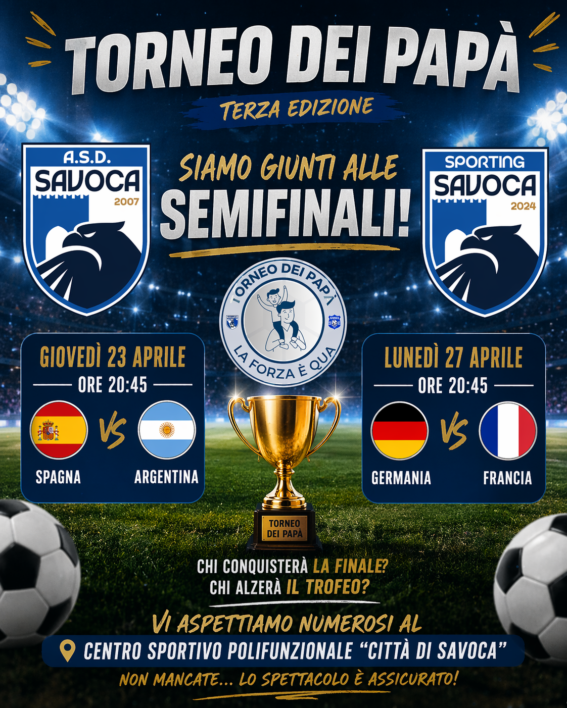 venite a sostenere i protagonisti del Torneo dei Papà e a vivere due serate di grande calcio.